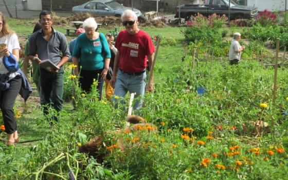 On Day 12, we pulled into Wheeling, West Virginia to visit Grow Ohio Valley, Farm 18, right in the midst of an area with high poverty rates. We met Danny Swan, a young man who had lived at Mother Jones House while a student at Wheeling Jesuit University. He wanted to remain connected with the children in the neighborhood, so upon graduation he built a teepee and lived there for 18 months. Wanting to find a way to make fresh fruits and vegetables available, Grow Ohio Valley received permission to start gardening on the ground cleared for construction of a highway. Danny started reclaiming the land.