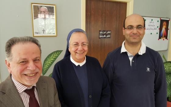 Sr. Tamam Salame is sister superior of the Franciscan Sisters of the Cross' Notre Dame Hospital in Beirut, Lebanon, and her colleagues include Dr. Amine Webhe, a physician on staff at the hospital, and Elie Rizkallah, the hospital's financial director.