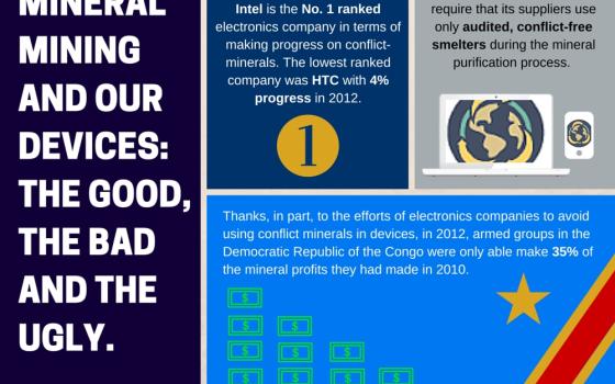 In the eastern part of the Democratic Republic of the Congo, mining profits fuel regional conflicts, and several years ago, reports surfaced that Mexican drug cartels were eyeing a move into mining. The term “conflict mineral” refers to those minerals mined by such violent groups, and there’s been vocal pushback against using conflict minerals in popular electronic devices like cell phones and laptops. To help consumers make informed decisions about their devices, in 2012, the Enough Project published a report ranking electronics companies and their efforts to find alternatives to conflict minerals.
