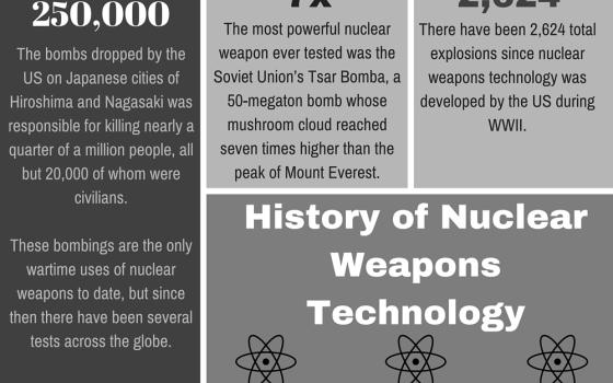 North Korea is only the latest country to have developed nuclear weapons — the problem is larger than any isolated example. No matter which country is developing them, nuclear weapons are deathly dangerous to our planet — they are tools that could very literally destroy the world. Many women religious dedicate their lives to standing up for peace and fighting against nuclear weapons, such as Sr. Megan Rice, whose dogged determination to rid the world of nuclear weapons resulted in over 40 arrests as well as jail time.