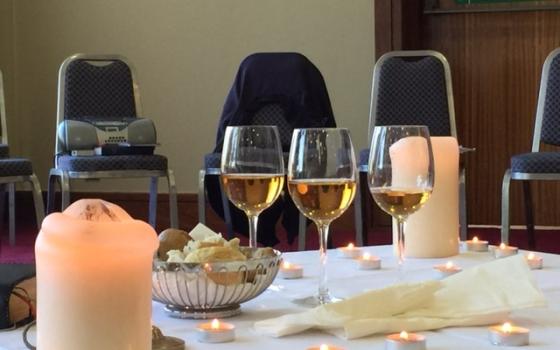 Unable to celebrate the Eucharist together, the group instead shared a prayer service, in which bread and wine (the sign of Christ) were placed on a table, but not shared (a symbol of our division). Each person placed a candle on the altar, as a sign of our solidarity with women and of our hope for the time when women will be treated as equals in the church.