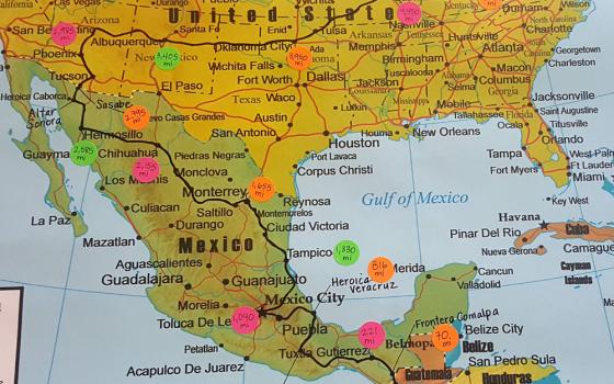 With help from Guatemalan parishioners, we created a map showing the route they would have taken to migrate and calculated the total miles. We printed T-shirts and passed out pedometers. Throughout the summer months, parishioners are tracking the miles they walk and reporting them weekly to the parish. We're tallying them and moving a pushpin along the map to show our progress. The pushpin is a monarch butterfly, the international symbol of migration.