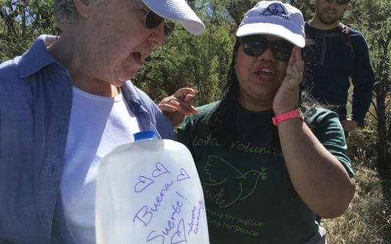 In the summer of 2000, because of the increased number of deaths, Humane Borders formed to put water in the desert for migrants. My Loretto delegation this past April went out with Humane Borders to check three of the 50 blue water barrels marked by 30-foot flags. Our leader, project director Joel Smith, said "I love the desert too much to see people suffer and die out here."