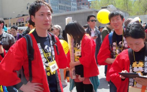 The Peace & Planet gathering included a march to the United Nations. The youth and vibrancy was striking. It was the Japanese who were the spine of the march, dressed in bright colors and carrying gifts of paper cranes to symbolize hope and paper dragons declaring (with words inside their mouths) that they would eat the bombs. It was theater saying gently that the Japanese know the horrors of nuclear war.