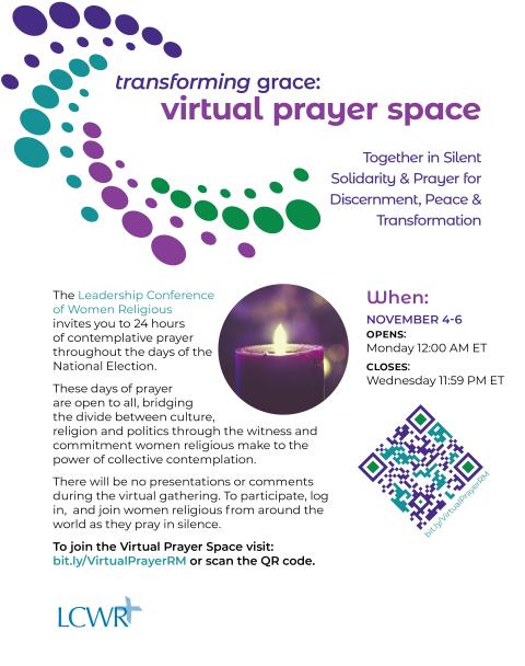 They created dozens of reflections, many of which were translated into Spanish by the Sisters of Mercy of the Americas, and held online virtual prayer sessions during each party's convention, with another planned for Election Day. [See the graphic at right to view a flyer with more information about the virtual gathering.]