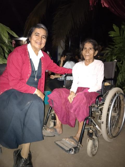 La Hna. Alicia Guevara Pérez, Misionera de la Eucaristía, junto a una señora llamada Elenita durante una de las visitas a los enfermos de la comunidad Palma Larga, una de las más de 20 que las hermanas visitan periódicamente en el sur de Oaxaca. (Foto: cortesía Hna. Alicia Guevara P.)