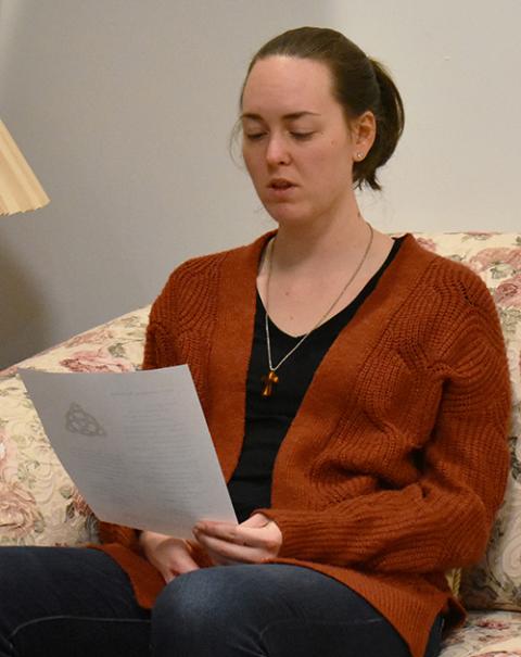 Rachel Dunlap, novicia de las Hermanas de la Presentación de la Santísima Virgen María, lee durante la oración de la tarde en el Noviciado Colaborativo Intercongregacional de Chicago. (Foto: Julie A. Ferraro)