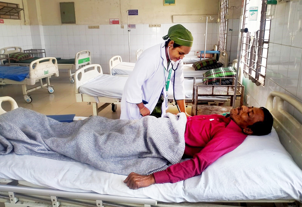 Sathi Terejina Tirki takes care of her patients at a rural government hospital. (GSR photo/Stephan Uttom Rozario)