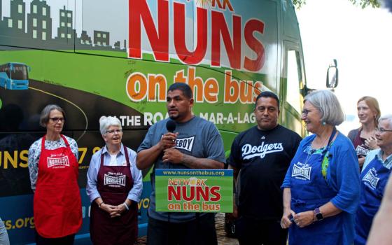 Overlooking the sandy beaches of Santa Monica, the 2018 Nuns on the Bus set off for Mar-a-Lago on Florida's southeast coast Oct. 8 — from "sea to shining sea," said Social Service Sr. Simone Campbell, executive director of Network, a Catholic social justice lobby, which sponsors the bus tour.