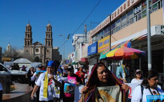 Outside the Cathedral of Our Lady of Guadalupe in Juárez, Mexico, women passed around a microphone before a large group of spectators Feb. 16 to recount firsthand experiences with — or as — migrants and the labor movement.