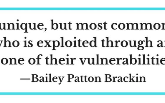 "All cases are so unique, but most commonly, we're talking about a person who is exploited through an understanding of one of their vulnerabilities," Brackin said. "Oftentimes, a trafficker ends up building a relationship with a young person by finding out what they're missing in their life. Someone involved in foster care who doesn't have a family to rely on — that's a vulnerability where the trafficker can exploit and say, 'I'll provide that for you, I'll be that person.' It tends to be more of an involved process rather than someone who is picked up instantly and trafficked."
