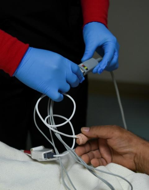 A health care worker adjusts a monitor on a patient's hand at United Memorial Medical Center in Houston Sept. 30. Texas ranks 50th in the United States for access to affordable health care. (CNS/Reuters/Callaghan O'Hare)