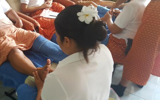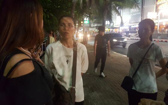 The sisters rely on word-of-mouth to encourage women to come to the center. And a few times a month, Boonmul and Sr. Apinya Sornjan swap the blue skirts and blouses of their habits for black slacks and white tops and go out into the streets along the bar scene of Pattaya. Sometimes they accompany visitors to see the sex trade that is part of the city's tourism industry; other times, they try to spot women who may be receptive to the center's programs and a chance to change their lives.