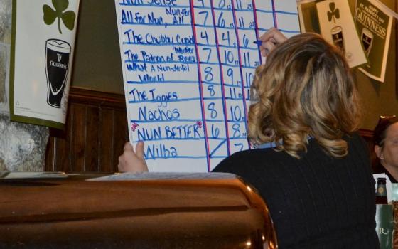 A team of eight women religious representing four communities took on a pub full of young adults for bragging rights, beer and "prayerful pretzels" at a March 13 trivia night in Arlington, Virginia.