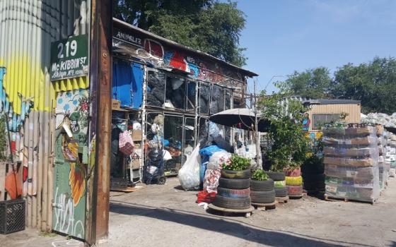 She then tosses clear plastic bags bulging with cans into piles that tower above her head. She hops on a forklift to move wooden pallets, clearing a new spot for the vegetable garden sprouting in an industrial site in Brooklyn. And as she weaves her way around bins, bags and crates, she greets each of the more than a dozen people — often known as "canners" — who are there to count, sort and redeem what they've collected from the endless stream of cans and bottles that New Yorkers discard.