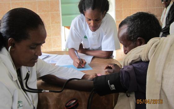 By 6:30 in the morning, the doors of St. Louise Eye Clinic in Mekelle, Tigray region of Ethiopia are wide open for service. People of all ages are lined up waiting their turn for examinations or procedures at this clinic run by the Daughters of Charity. Sister Hiwot, director of the clinic, has organized the program of Dr. Vito Mariella, a Spanish eye surgeon and Dr. Berrhan Mekonnen, an Ethiopian cataract surgeon on staff for their long day's work. Dr. Mariella is a volunteer from Proyecto Vision, a Spanish organization that rotates eight teams of ophthalmologists every four weeks to the clinic. It is such a popular place for the volunteers that one of them has come 22 times to work with the sisters.