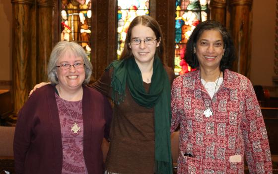 Sister Chris Kunze, SCN; Director of Social and Environmental Justice Joetta Venneman, and Director of Ecological Sustainability Carolyn Cromer represented the Sisters of Charity of Nazareth at a protest Jan. 6 to oppose the LG&E pipeline that is proposed to go through Bernheim Forest and neighboring small farms. LG&E has taken Bernheim to court with a court date set for 9 a.m. Tuesday in Bullitt County, Kentucky. The court will determine whether or not to condemn protected land for a natural gas pipeline.