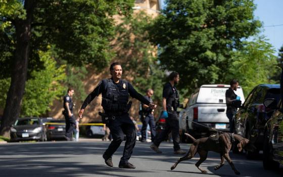 First responders block off the crime scene following a mass shooting at Annunciation Catholic School in Minneapolis Aug. 27, 2025. (OSV News/Reuters/Tim Evans)