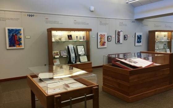 The exhibit is in large part the fruit of two years of labor by Amanda Kaminsky, a doctoral student at JST and Schneiders' research assistant for the past five years. After meticulously archiving materials from Schneiders' office and from the IHM motherhouse in Monroe, Michigan, archivists at SCU invited Kaminsky to curate an exhibit around the collection.