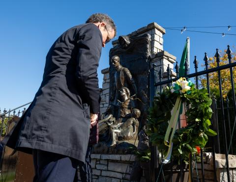 On the sunny grounds of Chicago Gaelic Park, an Irish cultural center in the Village of Midlothian on the southwest border of the city, Ireland's minister of culture, communications and sports, who also chairs the commemoration committee, laid a wreath at a famine memorial sculpture at the Nov. 2 ceremony.
