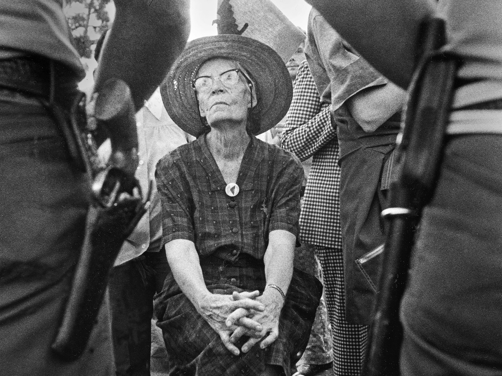 Dorothy Day sits in protest as police stand by. (Bob Fitch/Courtesy of Journey Films)