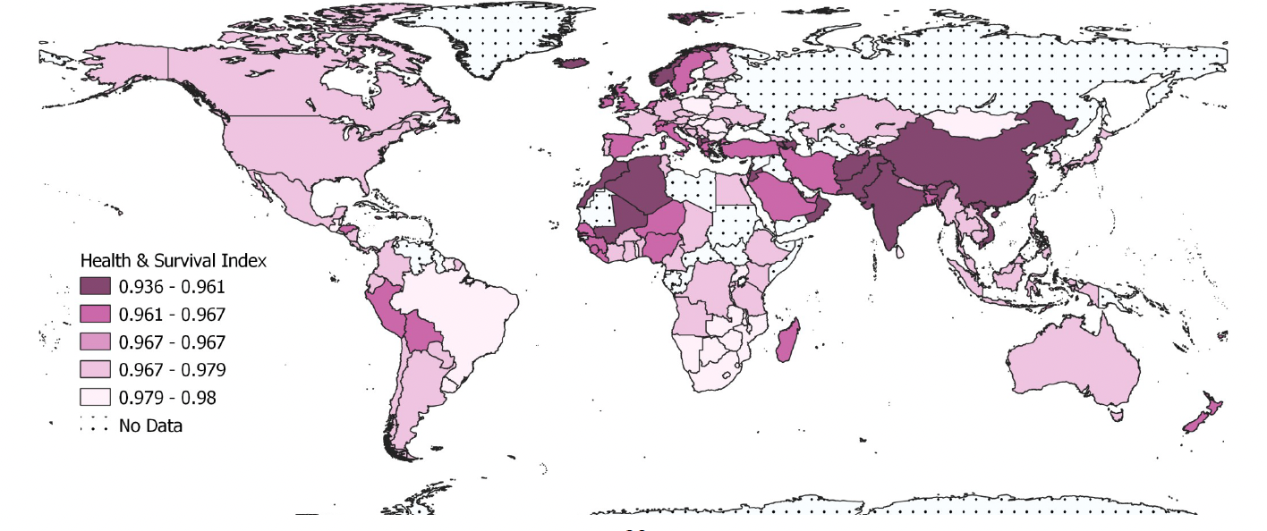 Click the infographic to view a map of the health and survival gap between women and men (2023). (Source: 2025 Fordham Pope Francis Global Poverty Report)