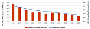 Click the infographic to view a graph of world adult illiteracy rates. (Source: 2025 Fordham Pope Francis Global Poverty Report)