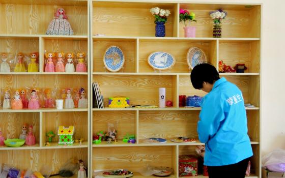 At the Ningjin Occupational Center for young adults aged 16 to 35, staff train the residents to make crafts that are sold locally and yield a small income.