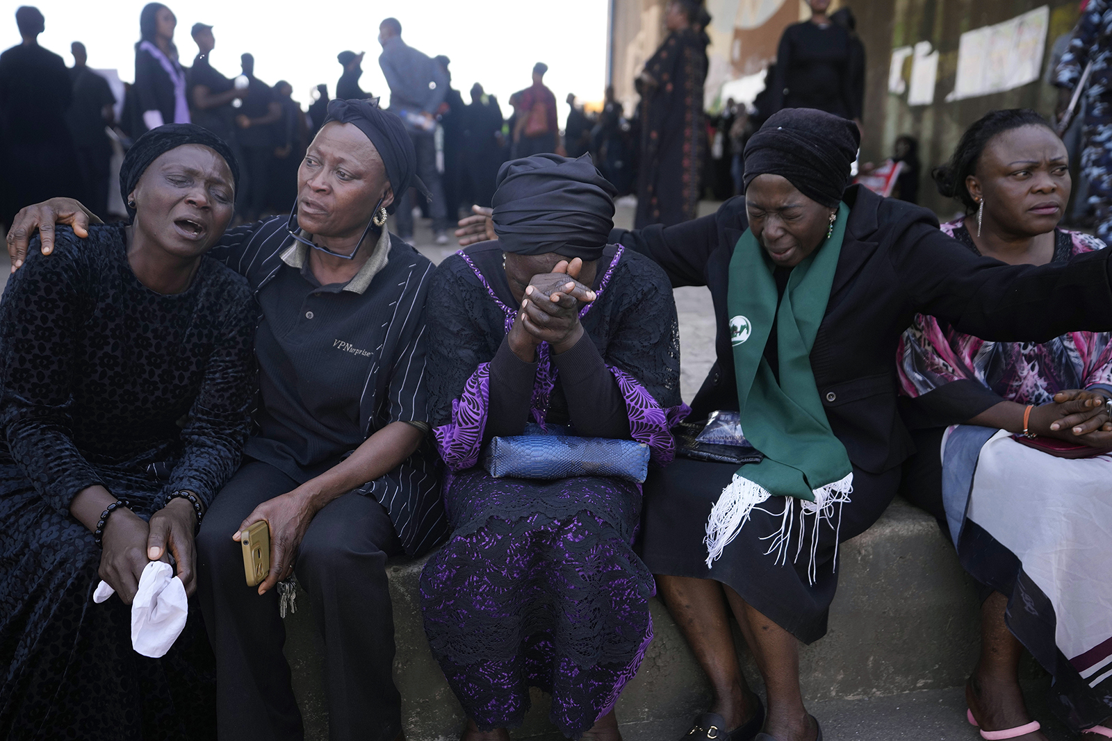 Women react during a march in solidarity with the victims of a Christmas Eve attack in Jos, Nigeria, on Jan. 6, 2024. (AP/Sunday Alamba)