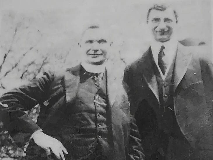 Fr. James E. Coyle, left, is seen with then Irish president Éamon de Valera in the United States in an undated photo. (Drum Heritage Centre)