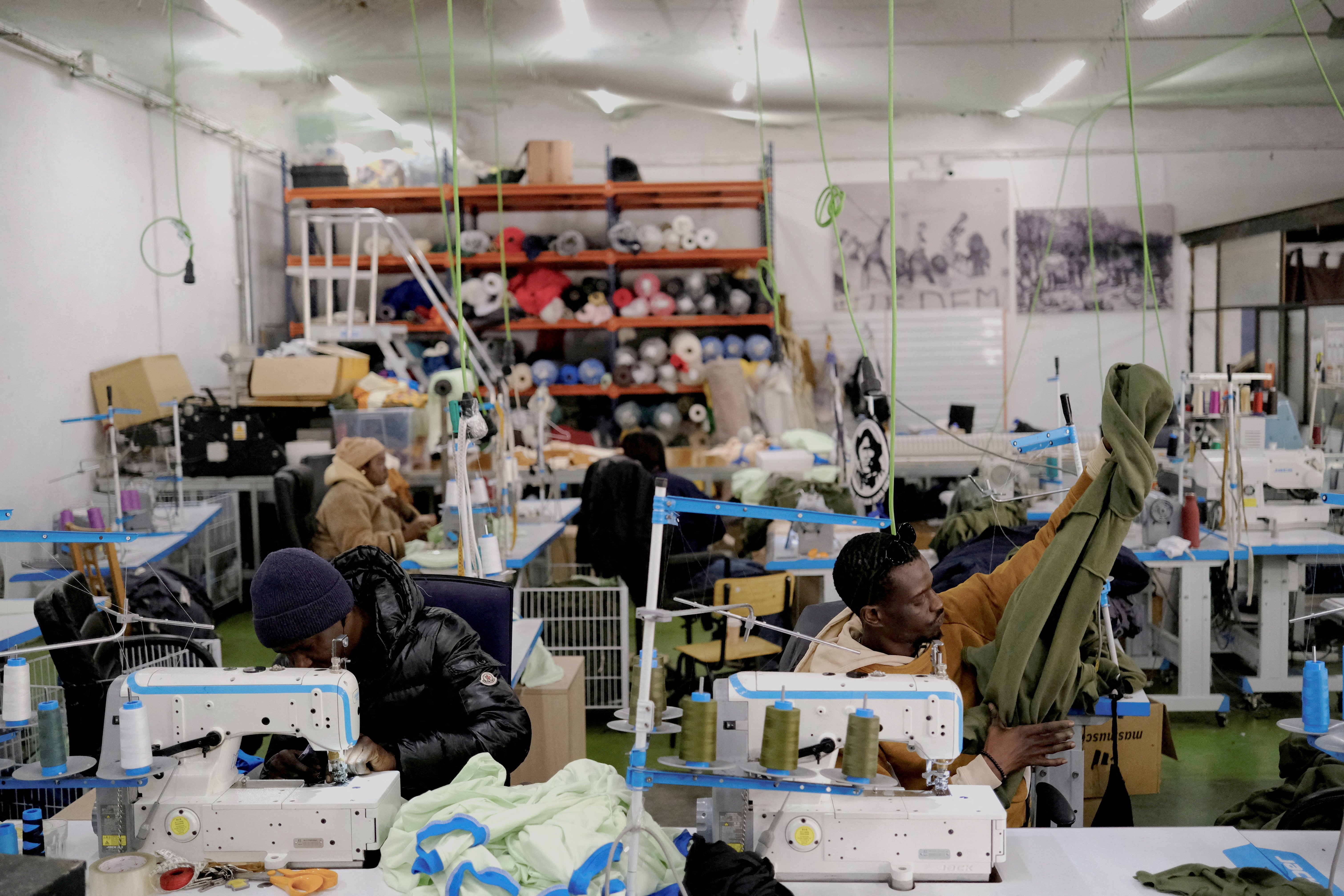 Immigrants who are former street vendors work as tailors sewing clothes Dec. 5, 2025, for their own collections to sell in a Top Manta shop in the Raval district of Barcelona, Spain. "Top Manta" is the name given to street vendors in Spain, where mantas (blankets) are used to display goods. (OSV News/Reuters/Nacho Doce)
