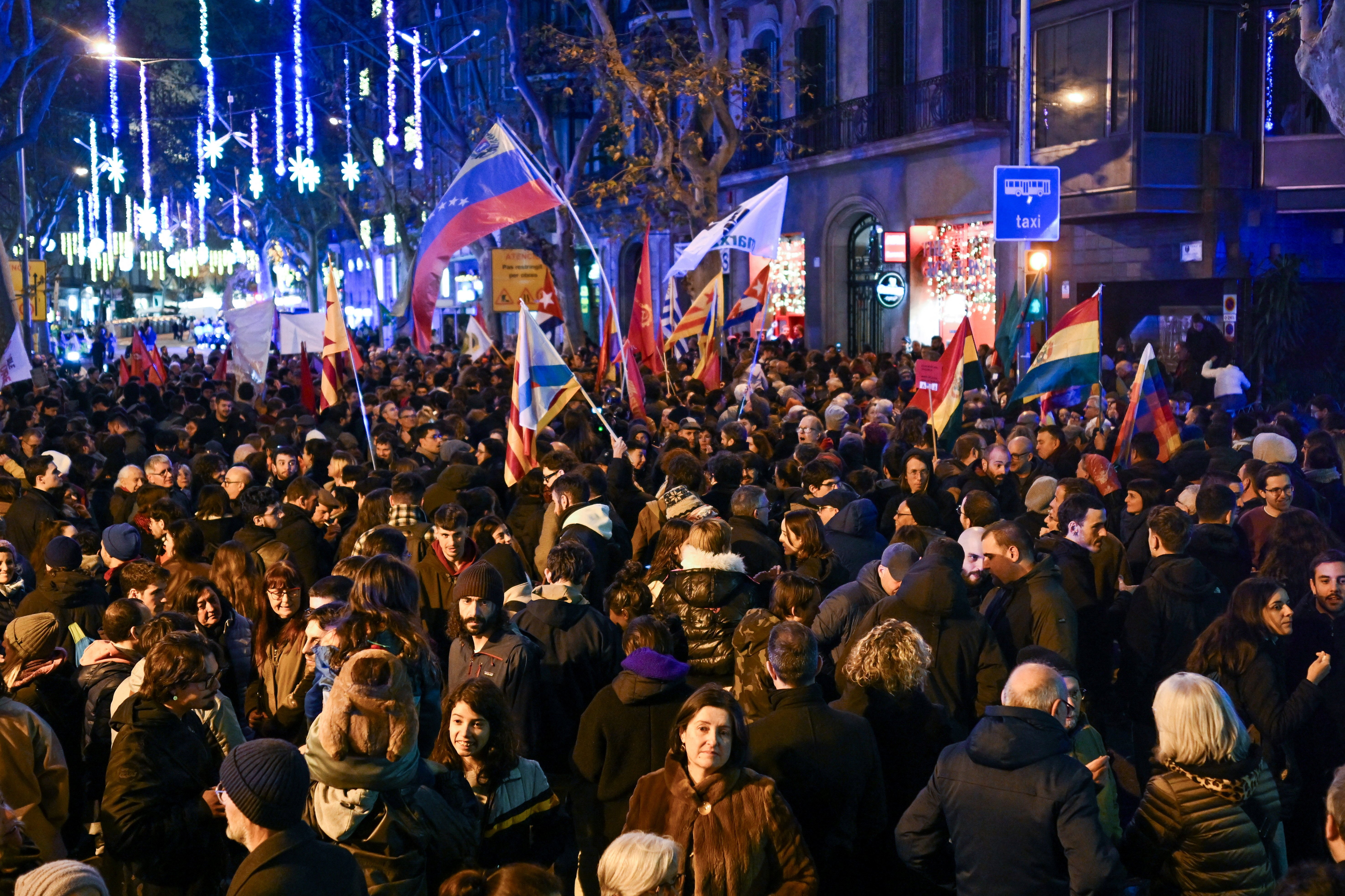 Demonstrators attend a protest in Barcelona, Spain, Jan. 3, 2026, to oppose U.S. actions in Venezuela, after U.S. President Donald Trump said the U.S. had struck Venezuela and captured its President Nicolas Maduro. (OSV News/Reuters/Lorena Sopena)