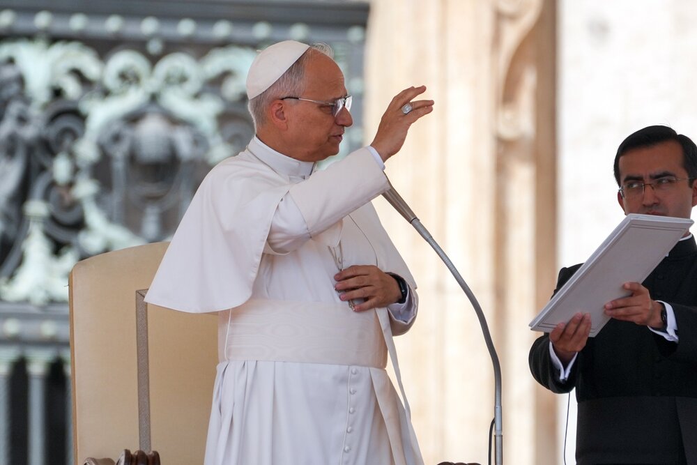 Pope Leo XIV gives his blessing during his weekly general audience in St. Peter's Square at the Vatican Sept. 17, 2025. (CNS/Lola Gomez)